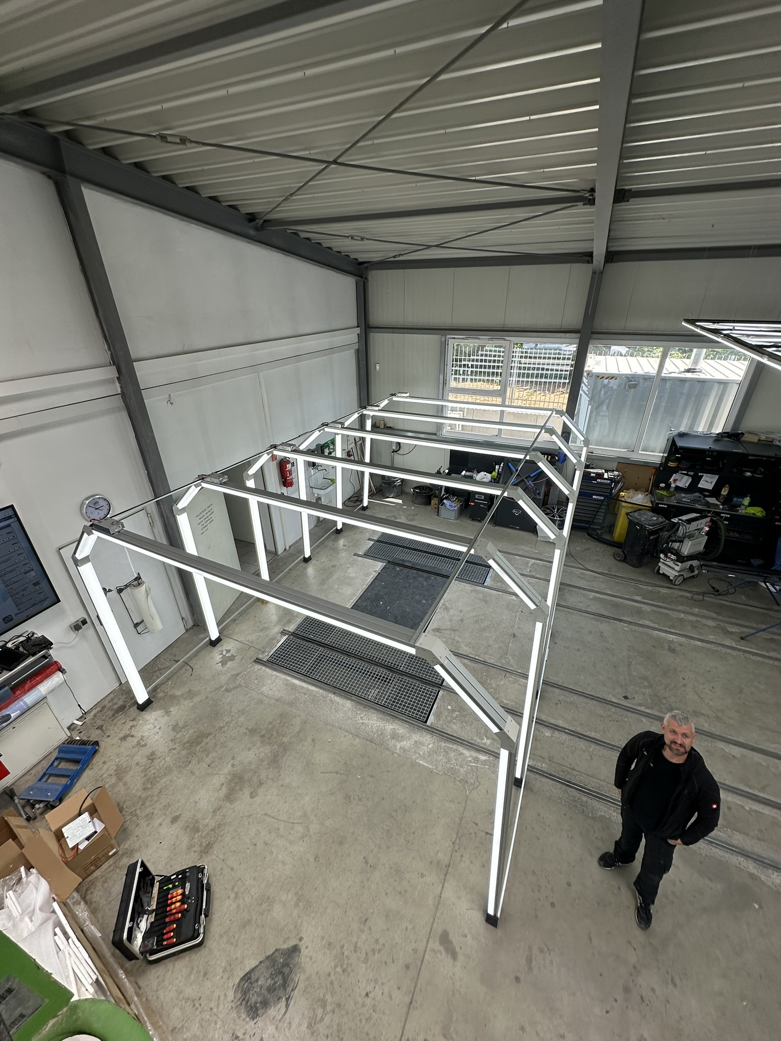 Für dieses Projekt wurde eine bestehende LED-ARENA umfassend umgebaut und auf den aktuellen Stand der Technik gebracht. Ziel war es, die Anlage nicht nur optisch aufzuwerten, sondern auch effizienter, langlebiger und besser steuerbar zu machen – ideal für den täglichen Einsatz in anspruchsvollen Gewerbeumgebungen. Das Ergebnis: gleichmäßige Ausleuchtung, starke Präsenz, moderne Lichtwirkung und eine Lösung, die sich perfekt an unterschiedliche Räume und Nutzungsszenarien anpasst.